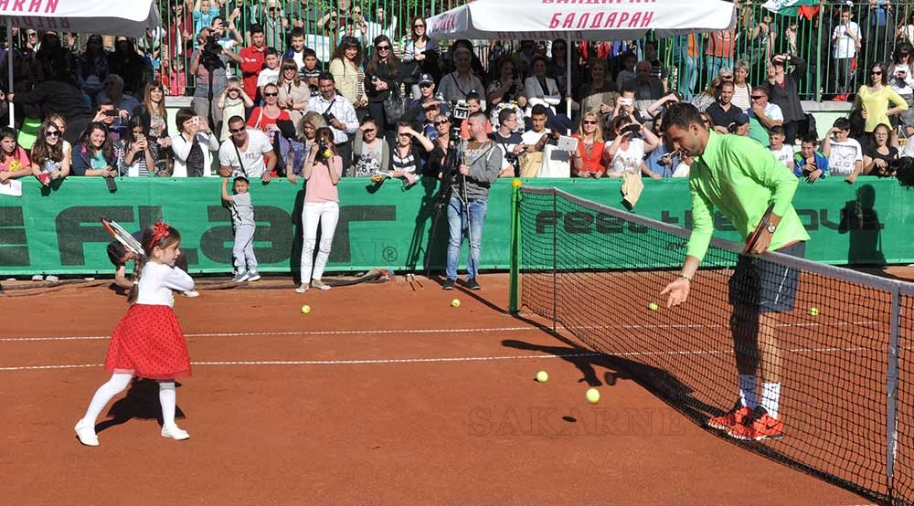 След това на новите кортове Григор Димитров направи и няколко разигравания с децата.