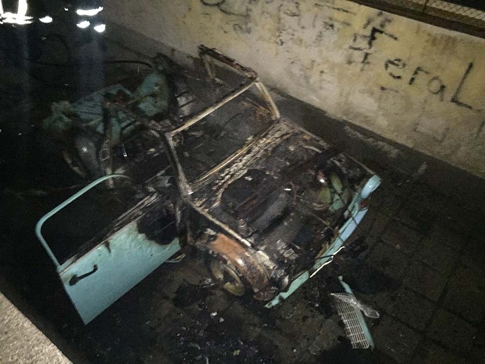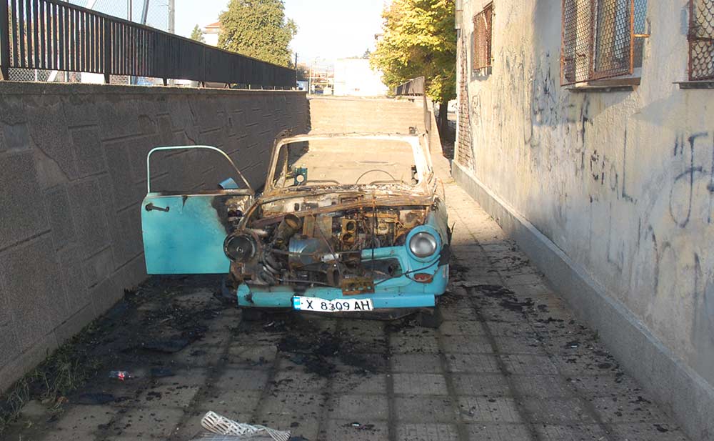 1 минутаЛека кола изгоря до избирателна секция в Харманли 15 минути преди 19,00 часа. Автомобилът е бил паркиран на игрището в двора на Гимназията и вероятно е бил бутнат по стълбите надолу. Спрял се е до физкултурния салон, където пожарникарите изгасиха останките от нея.