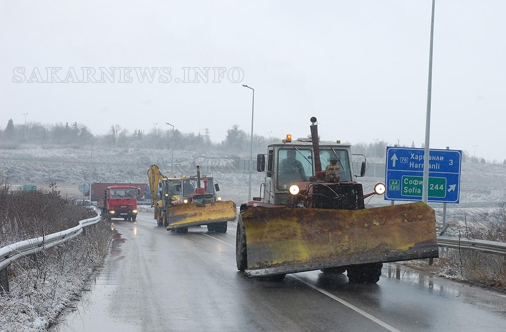 Затворен е пътят Симеоновград – Опан заради снеговалеж. Затворен за движение е и пътят село Долни Главанак – Малко Брягово – Ефрем в община Маджарово.