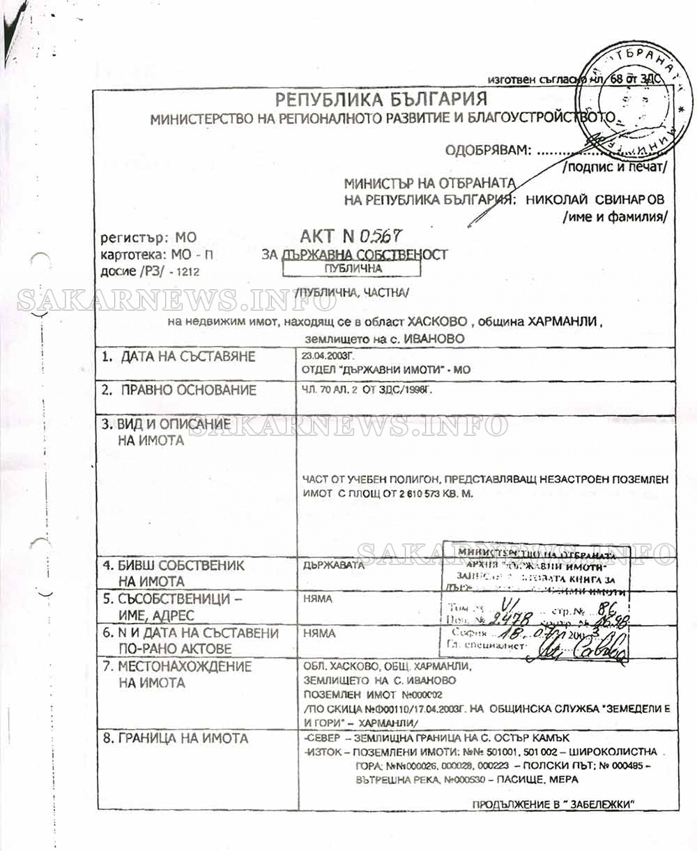 Това, на което Михаил Лисков се уповава е, че през 2003 година е издаден акт за публична държавна собственост (АПДС) от отдел „Държавни имоти“ на Министерството на отбраната. В него е записано, че военните са собственици на „част от учебен полигон, представляващ незастроен поземлен имот, с площ 2 610 573 кв.м. Намира се в землището на с. Иваново под №000002. Правата за ползване на имота са предоставени на основание на секретно постановление №148 от 21.07.1961 г. на Министерския съвет. За кмета това е най-важният документ и го цитира непрекъснато. Премълчава, че има разлика от това да си собственик на земя и да владееш язовир.